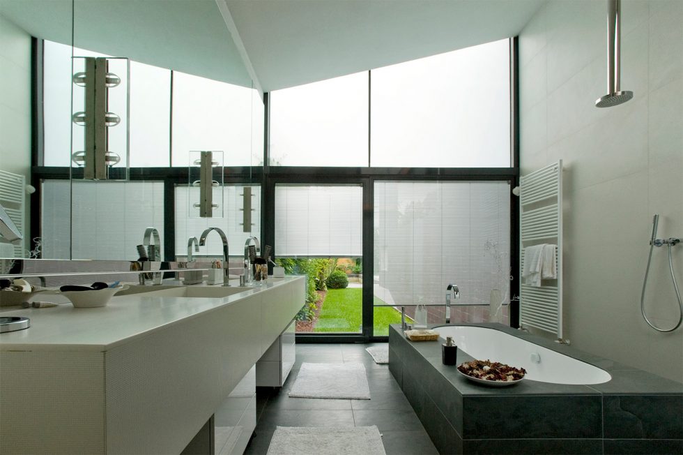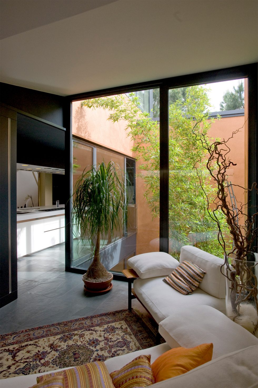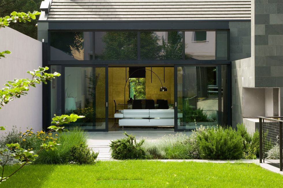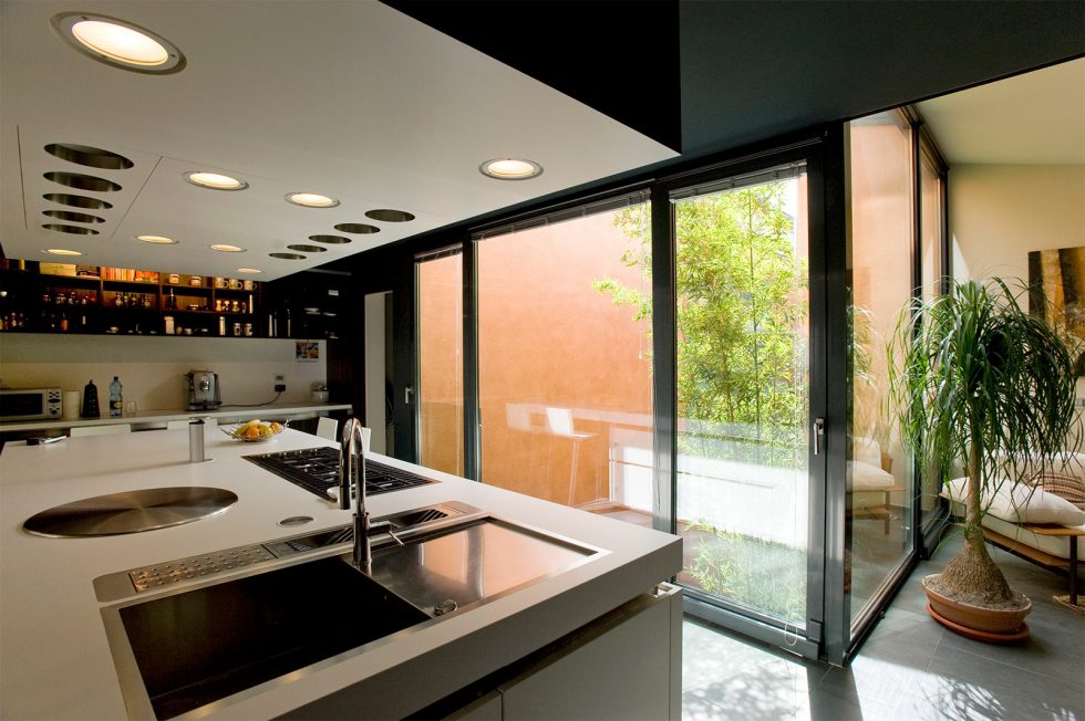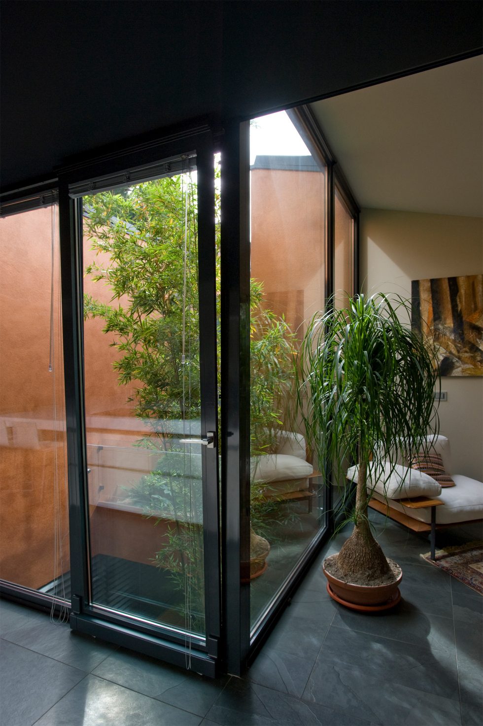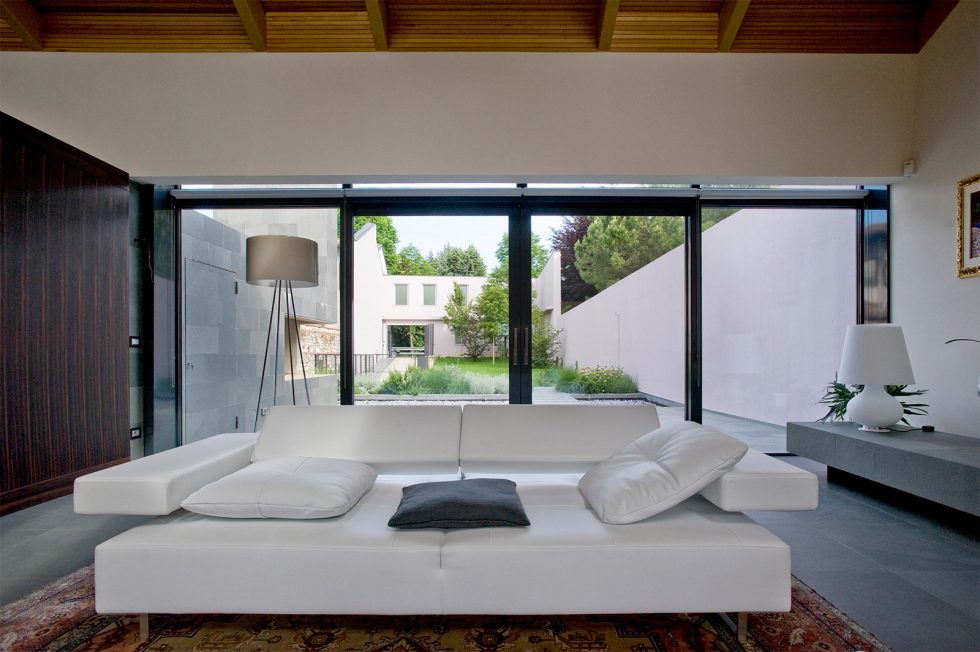 Architettura residenziale realizzata attraverso un progetto finalizzato alla composizione volumetrica rapportata all'area e al contesto esistente. L'utilizzo dei profilati di alluminio e del vetro è tale da smaterializzare le superfici verticali, rendendole puri diaframmi trasparenti e ambientali